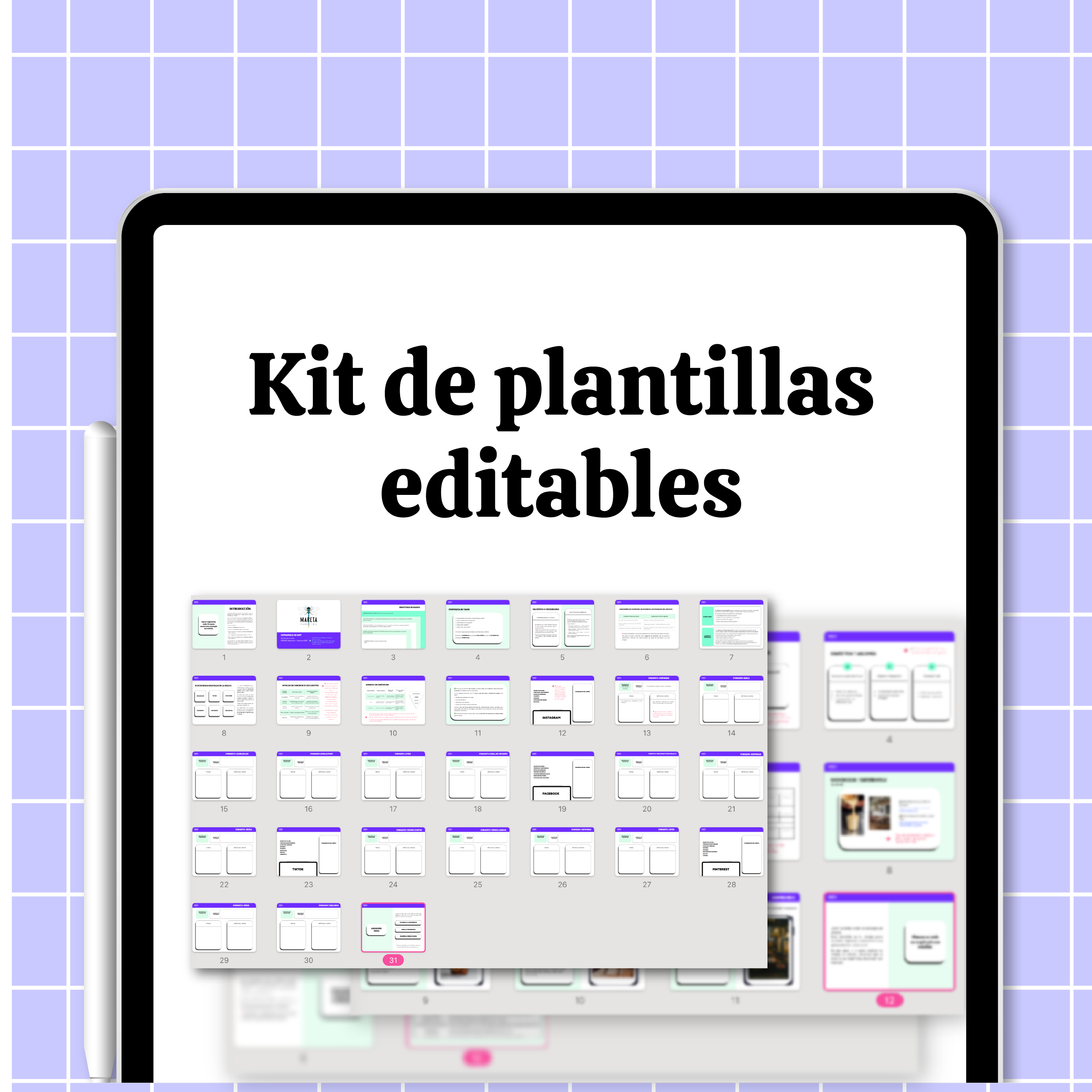 Este kit incluye las 4 plantillas clave para tener claridad, orden y presentación profesional en tu marketing digital. Ideal para freelancers, social media managers o marcas que gestionan su contenido y comunicación.